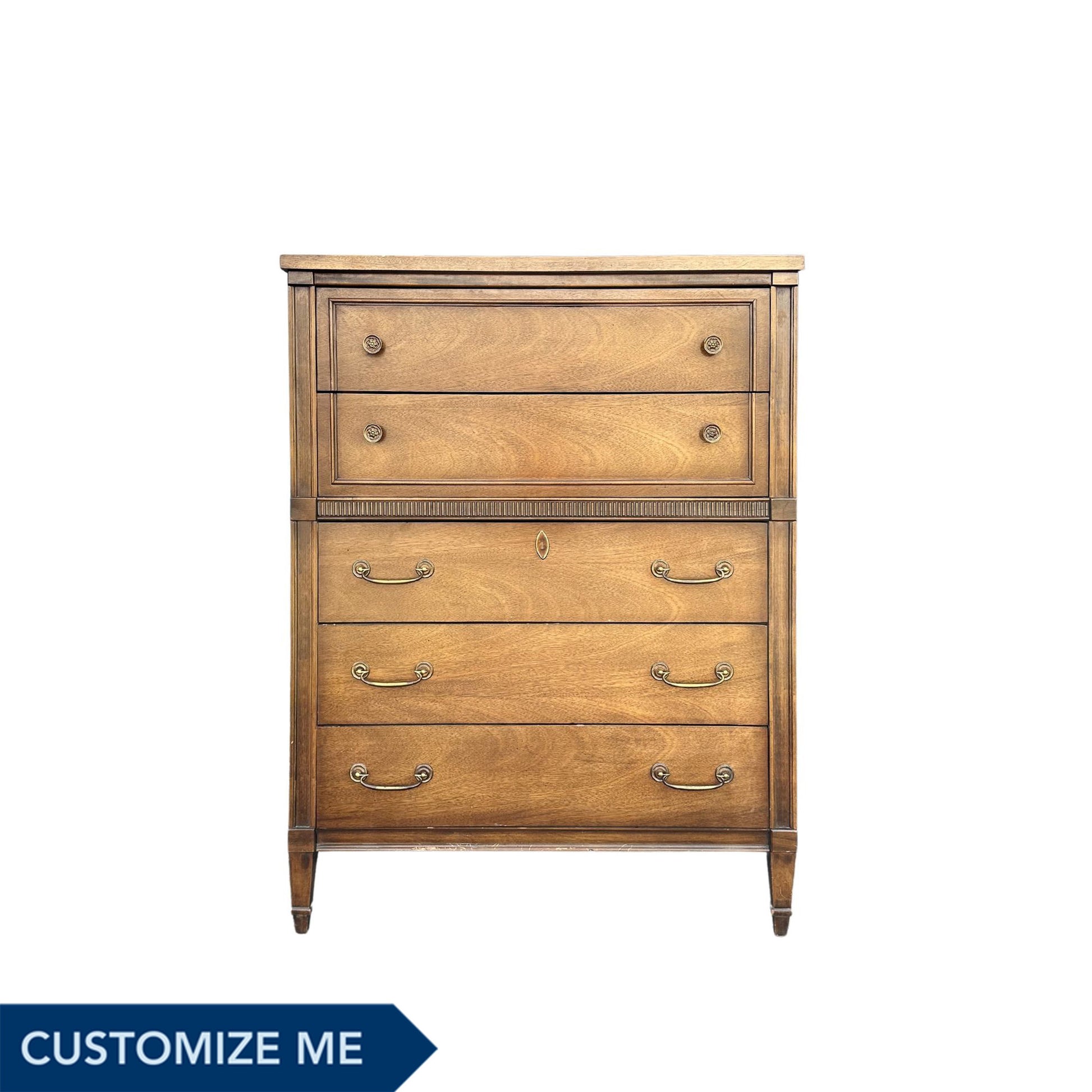 Benjamin is a Bassett highboy dresser who was recently rescued and is ready for refinishing. You pick your color and we do the rest!