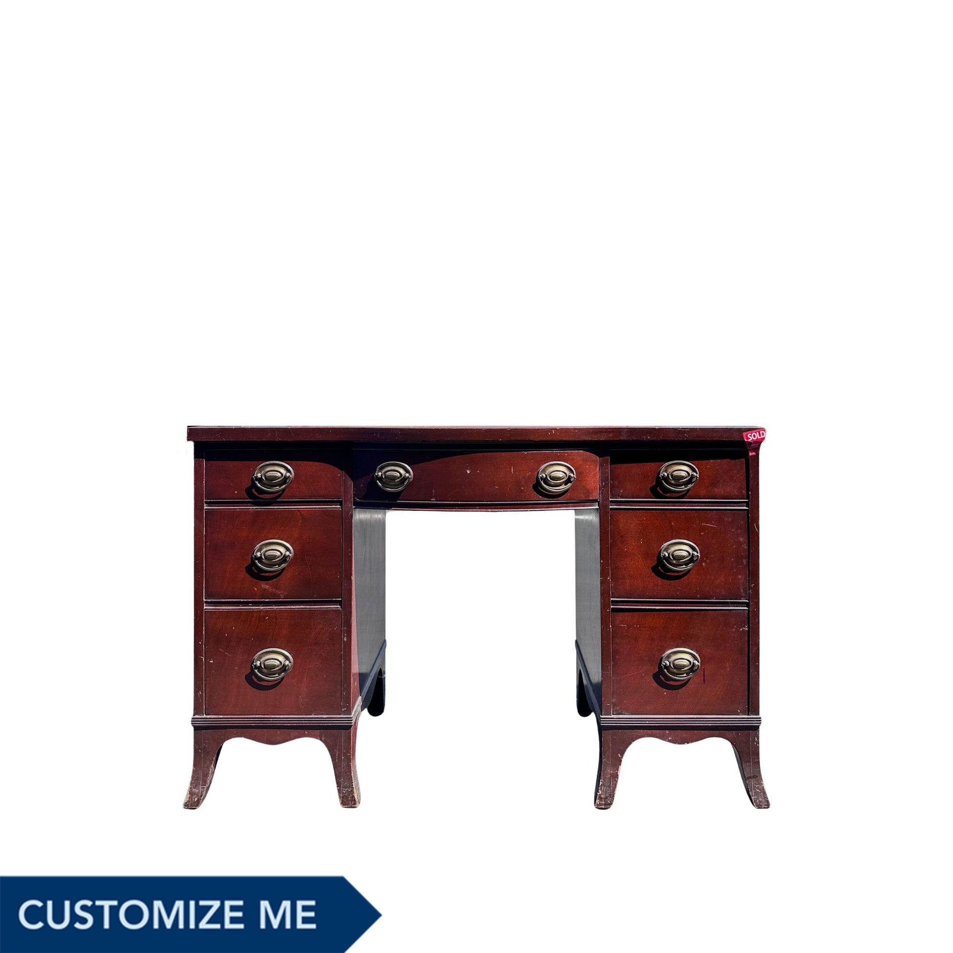 Dawn is a graceful mahogany desk with seven dovetailed drawers and decades of quiet history. Back in the day, she was a vintage makeup vanity, but she's just as ready to serve as a work-from-home setup or a homework station for the next creative mind.