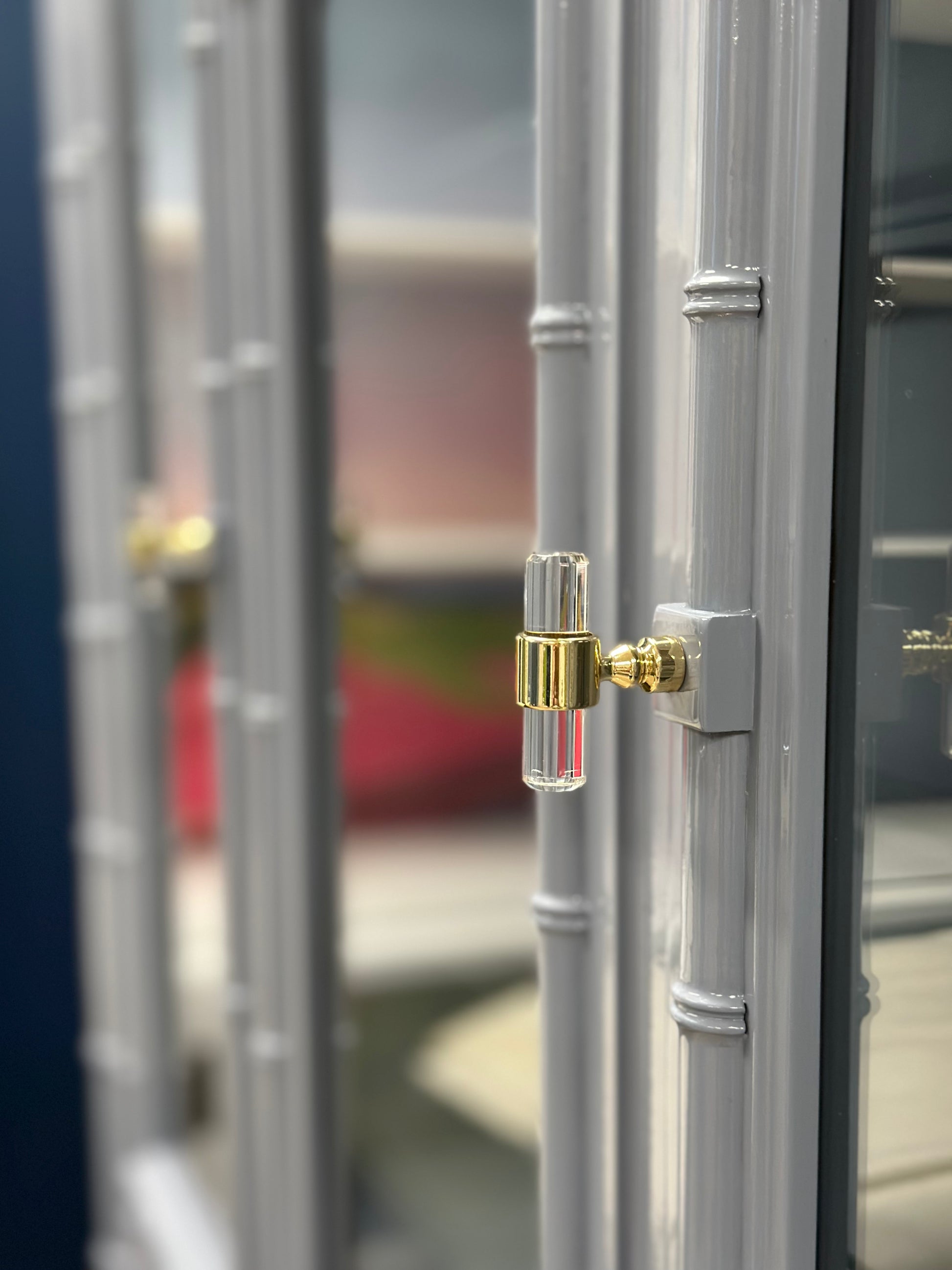 Della is a Dixie Furniture faux bamboo china hutch. She is sold and in the customization process.