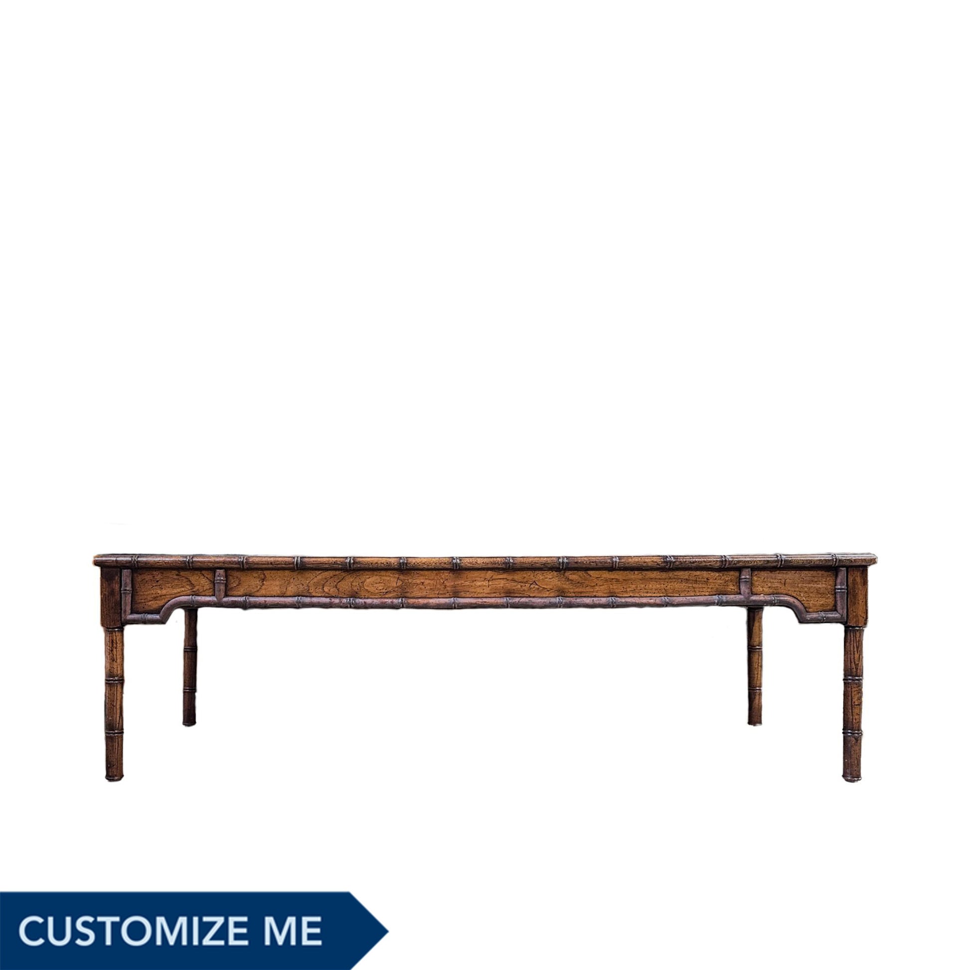 Meet Ryder, the ever-dapper Chinoiserie faux bamboo coffee table with a past as polished as a freshly lacquered manicure. Once the centerpiece of a perfectly coiffed living room, Ryder sat proudly atop a pristine Persian rug, nestled between two impeccably upholstered sofas—permanently encased in plastic, of course.