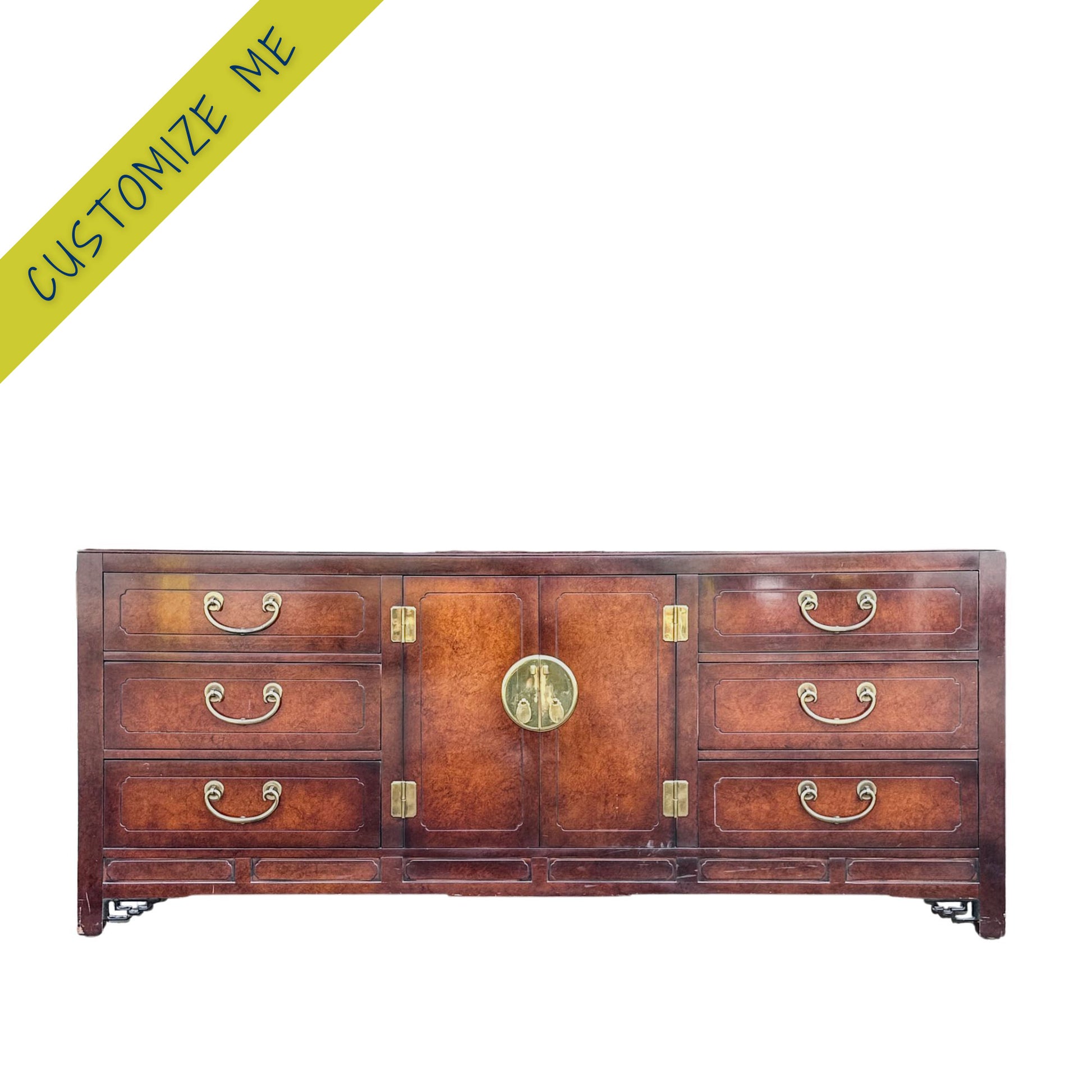 With graceful lines and dramatic, original Asian hardware, Wai carries the presence of someone who’s seen a lot—and judged none of it. Crafted from richly toned wood and built with balance and intention, Wai was likely the quiet witness to decades of family rituals, celebration toasts, and at least one awkward conversation no one ever spoke of again.